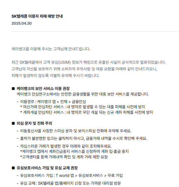 최근 개인정보 유출 사고와 보이스피싱, 스미싱 같은 금융 사기가 증가하면서, 나도 모르게 대출이 실행되거나 카드가 발급되는 피해가 늘고 있습니다. 특히 SKT 유심 해킹 사건 이후 많은 분들이 본인의 금융 안전망에 대한 관심을 갖게 되었는데요 🧠 이런 피해를 미리 차단할 수 있는 강력한 금융보안 서비스가 있습니다. 바로 여신거래 안심차단 서비스입니다. 오늘은 이 서비스가 무엇인지, 어떻게 신청할 수 있는지, 대상 금융기관은 어디인지, 그리고 해제 방법까지 꼼꼼하게 안내해 드리겠습니다 📋